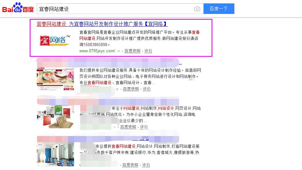 上面我們講到打開百度找 “******公司”找到做好的企業(yè)網(wǎng)站,這時(shí)有人會想,找啥公司呢。為什么不能找“產(chǎn)品名”能找到。可以啊,跟小編想的一樣,就是找到產(chǎn)品找到就好啊。 這樣陌生客戶要找某某產(chǎn)品,不就找到你了嗎,把網(wǎng)站推出去,推到市外,省外,國外,他們上網(wǎng)找找,找到老板您,上網(wǎng)看看,看著老板您!這樣好嗎?開拓新業(yè)務(wù)的好方法啊! 比如我們公司是做網(wǎng)站建設(shè),“哦,不是比如,是:我們是做網(wǎng)站建設(shè)的”。做了SEO 就會這樣如下圖(認(rèn)真看哦):